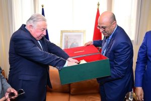 وخلال هذا الحفل، تم تقديم هدايا رمزية للسيد جيرارد لارشيه وأعضاء الوفد المرافق له، تعبيرًا عن روح الضيافة المغربية الأصيلة، وكتذكير بالمحطات المهمة التي ميزت زيارتهم لمدينة العيون. وقد تضمنت هذه الهدايا منتجات محلية تعكس غنى وتنوع التراث الثقافي الصحراوي، إضافة إلى مجسم تذكاري لمدخل مدينة العيون كبرى حواضر الاقاليم الجنوبية للمملكة.