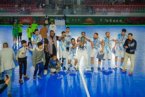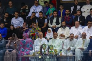 شهدت القاعة المغطاة الحزام بمدينة العيون، مساء الجمعة 27 رمضان 1446هـ، الموافق 28 مارس 2025، اختتام فعاليات النسخة الثالثة من دوري كرة القدم المصغّرة، الذي نظمته جمعية الأعمال الاجتماعية لموظفي جماعة العيون. وقد جرى الحفل في أجواء احتفالية رائعة، بحضور شخصيات بارزة، يتقدمهم السيد مولاي حمدي ولد الرشيد، رئيس جماعة العيون، إلى جانب السيد محسن بغداد، باشا المدينة، والسيد المهدي سيد الزين، رئيس الجمعية المنظمة، إضافة إلى عدد من المسؤولين والفاعلين في المجال الرياضي.