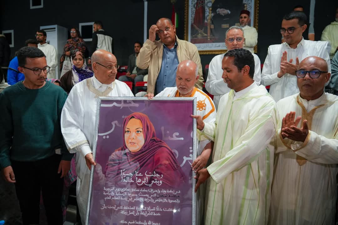 وفي لفتة وفاء مؤثرة، تم تكريم روح الفقيدة السيدة عائشة لمعدل، الموظفة السابقة بجماعة العيون، حيث تسلّم شقيقها السيد الحسين لمعدل درعًا تذكاريًا، وسط تأثر الحضور.
