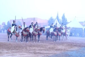 وتألقت ساحة المهرجان بعروض التبوريدة التي أبهرت الجمهور بلوحات فنية تحاكي الموروث الفروسي المغربي، تخللتها لحظات روحانية عبر تلاوات قرآنية وأنشطة دينية. كما شهدت الليلة المديحية الأولى ختم البردة في أجواء إيمانية خاشعة، إلى جانب سهرة روحانية بمشاركة فقهاء وأئمة وطلبة علم، أحيوا خلالها القلوب بالأناشيد والمدائح.