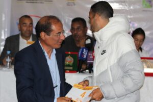 الندوة تضمنت أيضا احتفاءا بالبطلة العالمية المغربية “فاطمة الزهراء كردادي ” التي حلت كضيفة شرف لنصف ماراطون العيون