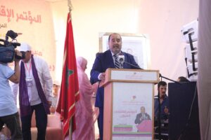 ان المؤتمر الإقليمي إذ يثمن الدينامية التنظيمية التي يعرفها الحزب عبر ربوع الوطن، وإذ يجدد تأكيد المبادئ السياسية والتوجيهية المعبر عنها في إعلان العيون الصادر بتاريخ 02 فبراير 2023 فإنه : يثمن عاليا الانخراط الواعي والمسؤول لكل أبناء الوطن في الصحراء المغربية في النموذج التنموي الذي أعلن عنه جلالة الملك والتي تبدو تجلياته في الأوراش المفتوحة والبنى التحتية القوية، والنهضة الحضارية الشاملة التي تعرفها أقاليمنا الصحراوية.