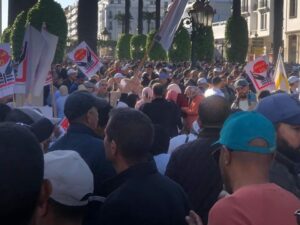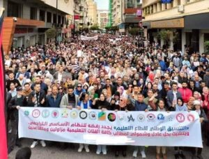 مسيرة حاشدة لرجال ونساء التعليم،تجوب شوارع الرباط،احتجاحا على النظام الأساسي الجديد.