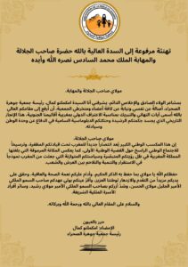جمعية “جوهرة الصحراء” ترفع برقية تهنئة وإخلاص إلى جلالة الملك محمد السادس بمناسبة الاعتراف الدولي بمغربية الأقاليم الجنوبية