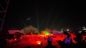 وفي ختام الأمسية، أضاءت 800 طائرة “درون” سماء ساحة أم السعد في عرض ضوئي ساحر أدهش الحاضرين، حيث تشكلت في الأفق لوحات فنية وأشكال مبتكرة عكست روح المواطنة والاعتزاز الوطني. كما تخللت العروض مشاهد توثق لأهم المشاريع التنموية المهيكلة التي تعرفها جهة العيون – الساقية الحمراء، ضمن النموذج التنموي الجديد للأقاليم الجنوبية الذي أطلقه صاحب الجلالة الملك محمد السادس نصره الله.