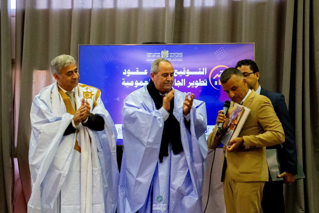 احتضنت المدرسة العليا للتكنولوجيا بمدينة العيون، يوم الجمعة 7 نونبر 2025، حفل توقيع عقود تطوير الجامعات العمومية برسم الفترة 2025–2027، الذي ترأسه وزير التعليم العالي والبحث العلمي والابتكار، السيد عز الدين المداوي، بحضور السيد الكاتب العام للوزارة، ورؤساء الجامعات، ومسؤولي المؤسسات الجامعية، والمديرين المركزيين.