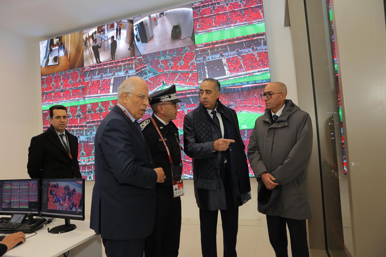 وخلال هذه الجولة الميدانية، زار المدير العام للأمن الوطني ولمراقبة التراب الوطني جميع المرافق والمنشآت المخصصة للجماهير، كما قدمت له شروحات حول كيفية عمل قاعات القيادة والتنسيق الموصولة بكاميرات المراقبة التي ستسهر على تأمين الملعب، وكذا مفوضية الشرطة التي تم إحداثها داخل الملعب للسهر على التطبيق السليم والحازم للقانون بما فيها القوانين المرتبطة بالأمن الرياضي.