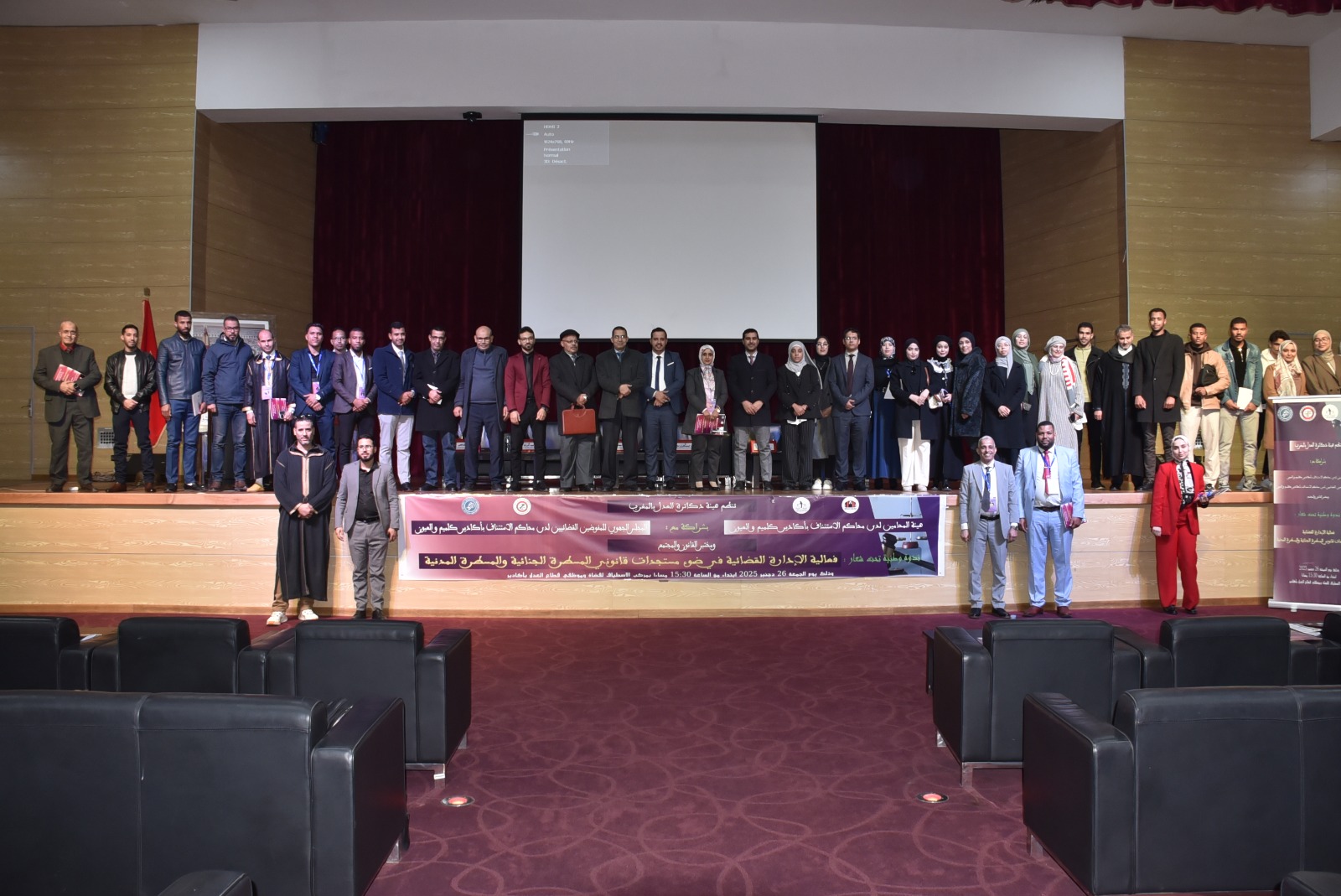 في سياق التحولات التشريعية العميقة التي تشهدها المنظومة القضائية بالمغرب، وما يرافقها من نقاش علمي ومهني حول سبل تعزيز النجاعة والفعالية، نظمت هيئة دكاترة العدل بالمغرب، بشراكة مع هيئة المحامين بدوائر محاكم الاستئناف بأكادير وكلميم والعيون، والمجلس الجهوي للمفوضين القضائيين بنفس الدوائر، ومختبر القانون والمجتمع بكلية العلوم القانونية والاقتصادية والاجتماعية بجامعة ابن زهر، ندوة وطنية علمية وازنة حول موضوع: «فعالية الإدارة القضائية في ضوء مستجدات قانوني المسطرة الجنائية والمسطرة المدنية»، وذلك يوم الجمعة 26 دجنبر 2025 بمركب الاصطياف لقضاة وموظفي العدل بأكادير.