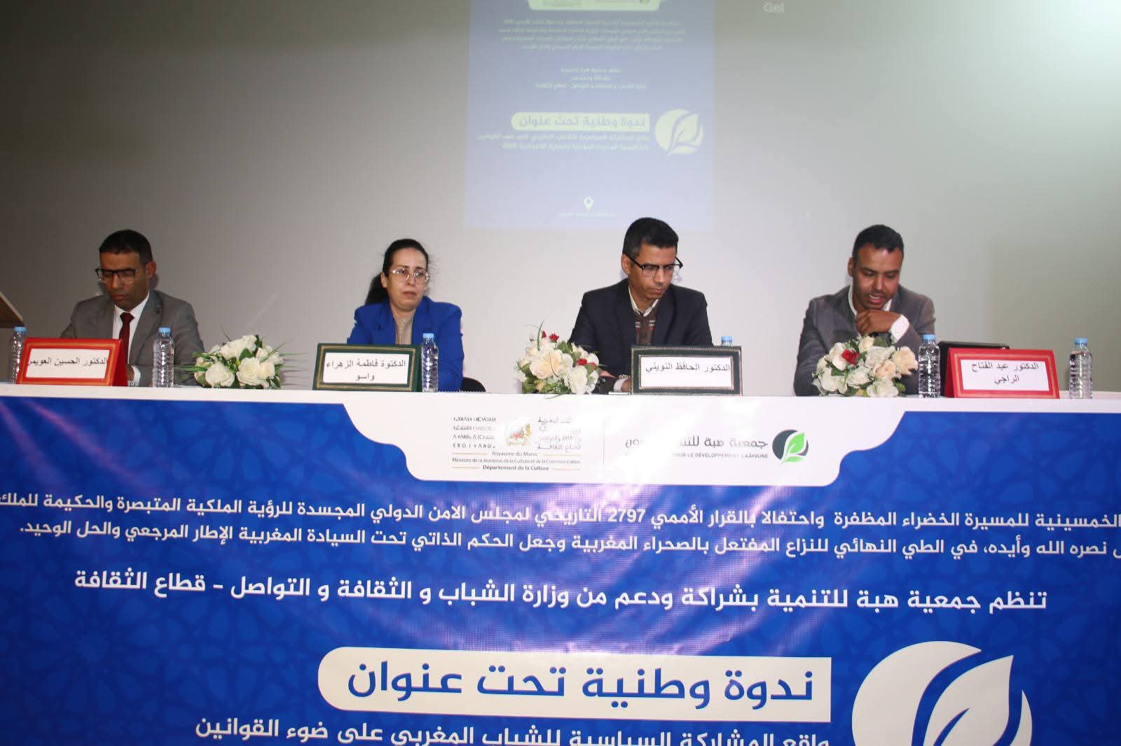 نظمت جمعية هبة للتنمية، بشراكة ودعم من وزارة الشباب والثقافة والتواصل – قطاع الثقافة، ندوة وطنية بمدينة العيون، بمناسبة الذكرى الخمسينية للمسيرة الخضراء المظفرة، واحتفاءً بالقرار الأممي رقم 2797 لمجلس الأمن، الذي يكرّس مبادرة الحكم الذاتي تحت السيادة المغربية كحل وحيد للنزاع المفتعل حول الصحراء المغربية.