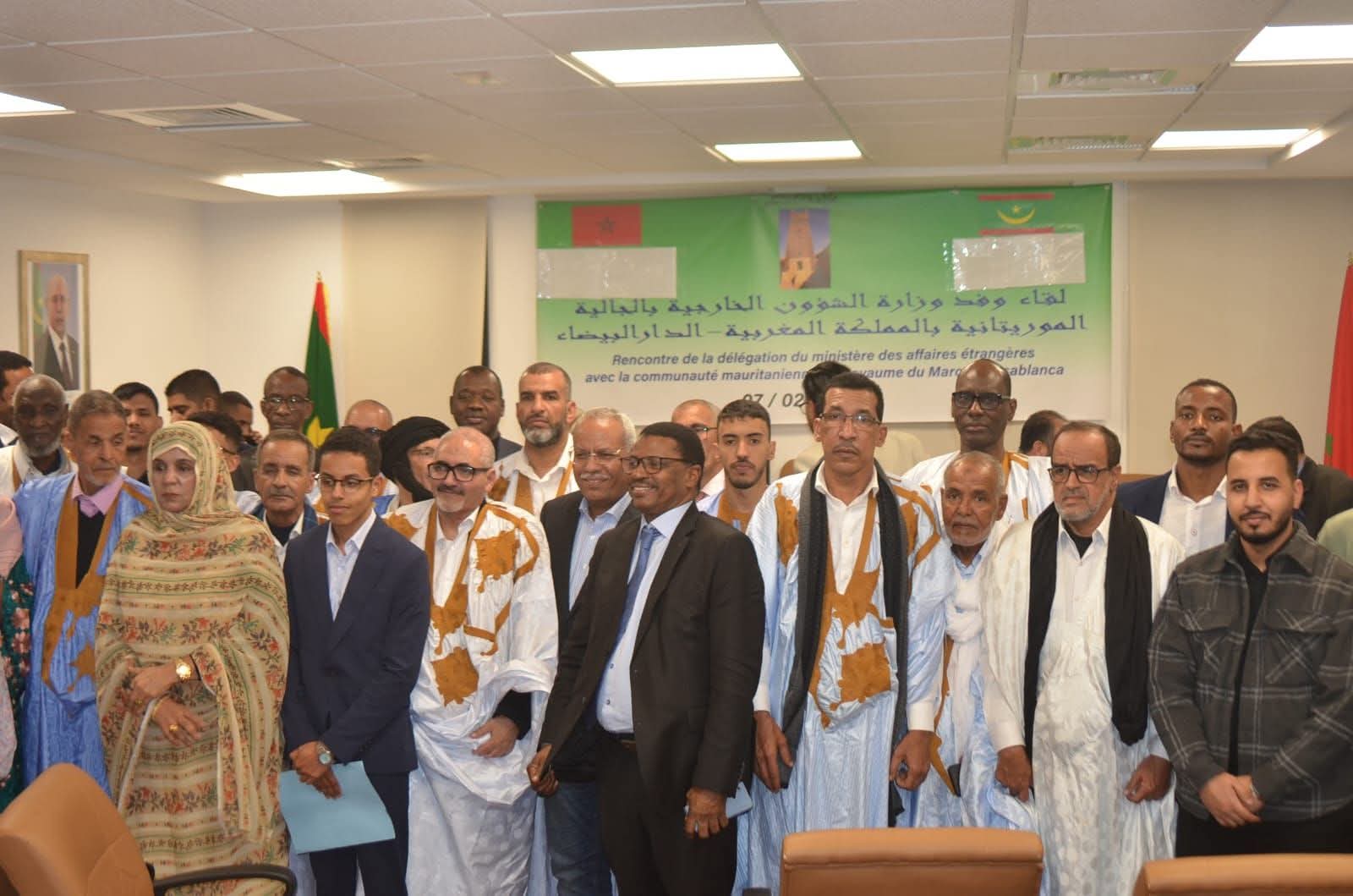 احتضن مقر القنصلية الموريتانية بمدينة الدار البيضاء، مساء اليوم السبت، لقاءً تواصليًا جمع أفراد الجالية الموريتانية المقيمة بالمغرب، من بينهم فاعلون وممثلون عن الأقاليم الصحراوية، وذلك بحضور السفير الموريتاني لدى المملكة المغربية، ولد باهيا، وتأطير لجنة عليا موفدة خصيصًا من وزارة الخارجية الموريتانية.