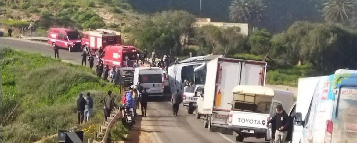 وحسب المعلومات الأولية للحادث، فقد تعرضت الحافلة التي كانت تنقل 44 موظفا لحادثة تلقائية على بعد 24 كيلومترا تقريبا من مدينة سيدي إفني، صباح اليوم السبت 21 فبراير الجاري، مما تسبب في تسجيل أربع وفيات كحصيلة أولية ، و 26 مصابا من بينهم موظفان حالتهما خطيرة.
