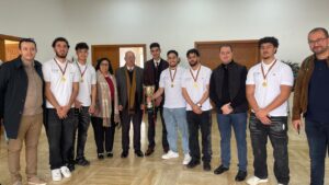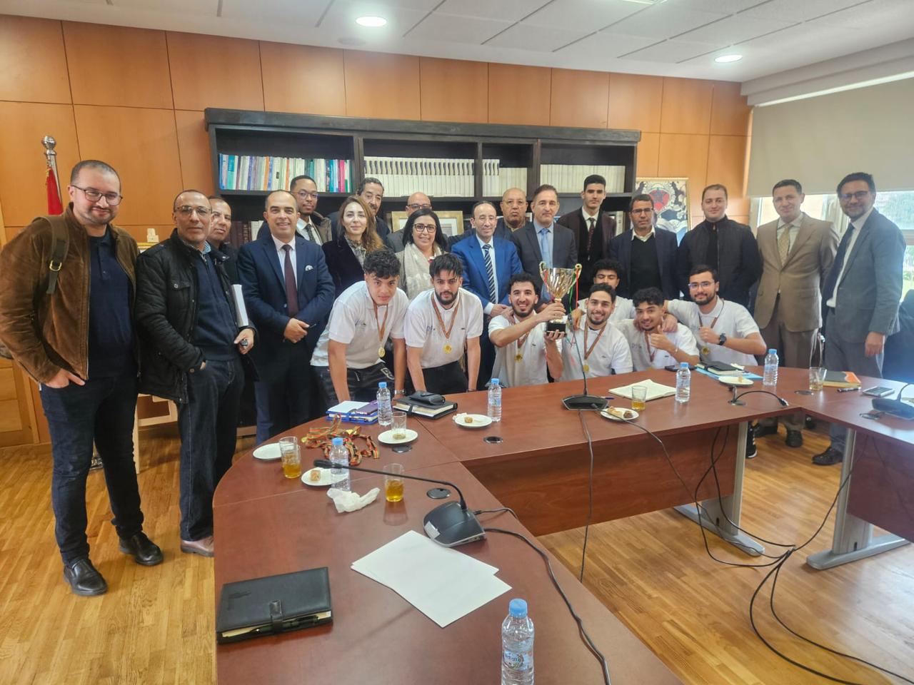 وبهذه المناسبة، أشاد السيد العميد بالمستوى الذي ظهر به الفريق، مثمنا المجهودات المبذولة والروح الرياضية العالية التي طبعت مشاركتهم، ومعرباً عن فخره بهذا التتويج الذي يُضاف إلى رصيد الكلية. كما هنأ كافة الطالبات والطلبة، متمنياً لهم مزيداً من التألق والنجاح في مسارهم الأكاديمي والرياضي.