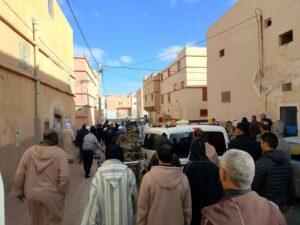 شُيّع جثمان الجندي الراحل محمد العدراسي في جنازة مهيبة، بحضور عدد كبير من المشيعين، إلى جانب حضور أفراد من القوات المسلحة الملكية الذين شاركوا في مراسم التشييع، حيث ووري الثرى وسط دعوات الحاضرين له بالرحمة والمغفرة وأن يتغمده الله بواسع رحمته ويسكنه فسيح جناته.
