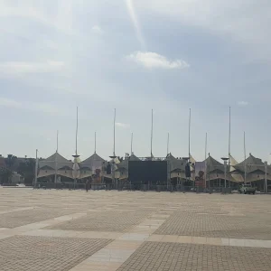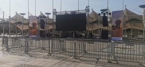 شاشة كبرى لمتابعة مباريات المنتخب الوطني وكل مباريات بطولة افريقيا. مع برنامج ترفيهي وموسيقي يوميا بساحة المشور.
