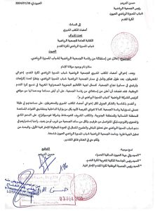 وبعد، إخواني أعضاء المكتب المديري للجمعية الرياضية شباب المسيرة الرياضي لكرة القدم، إخواني المنخرطين، بعد طول تفكير وتأمل في مسار الجمعية الرياضية شباب المسيرة الرياضي، ونظرا لعدة إكراهات ولرغبتي في مسايرة نجاح الجمعية، كممثل لجهة الأقاليم الجنوبية الصحراوية المغربية في نسيج كرة القدم الوطنية، فقد فضلت أن أعلن عن إستقالتي من رئاسة الجمعية، على أن أبقى مساندا ومدعما لها من موقعي.