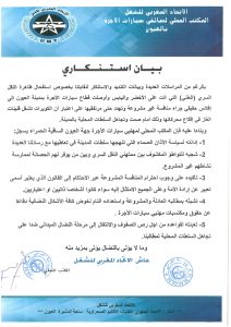 وبناءا عليه فإن المكتب المحلي لمهنيي سيارات الأجرة جهة العيون الساقية الحمراء يسجل: