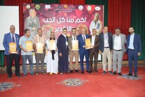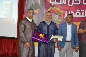 في حفل بهيج إحتفت المديرية الاقليمية لوزارة التربية الوطنية و التعليم الاولي و الرياضة بالعيون بشراكة مع مؤسسة الاعمال الاجتماعية للتعليم فرع العيون و جمعية تنمية التعاون المدرسي فرع العيون و الجمعية الوطنية لمديرات ومديري الثانويات العمومية بالمغرب فرع العيون و جمعية امل التآزرية لاسرة التعليم و الجمعية الوطنية لمديرات ومديري التعليم الابتدائي بالمغرب فرع العيون و رابطة الوحدة لاطر المصالح المادية والمالية بالعيون بثلة من رجالات التعليم الذين قدموا خدمات جليلة للمنظومة التعليمية بكل إخلاص و تفان في العمل و العطاء و ذلك تحت شعار “وفاء و عرفان ” .