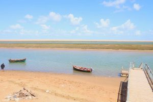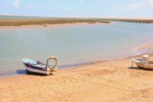 ويتيح التباين بين البحر والصحراء لوحة فنية رائعة يمتزج فيها خليط من الألوان بين الأخضر بالنسبة للعشب الطويل الذي ينمو في البحيرة، والأصفر والأبيض الساطع من الرمال، مرورا باللون الأزرق البلوري للبحر.