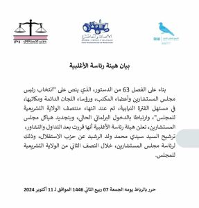 وذكر بيان للهيئة، اليوم الجمعة، أن هذا القرار جاء بناء على الفصل 63 من الدستور، الذي ينص على “انتخاب رئيس مجلس المستشارين وأعضاء المكتب، ورؤساء اللجان الدائمة ومكاتبها، في مستهل الفترة النيابية، ثم عند انتهاء منتصف الولاية التشريعية للمجلس”، وارتباطا بالدخول البرلماني الحالي، وبتجديد هياكل مجلس المستشارين
