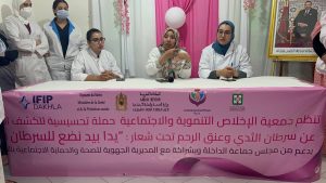 وقد تم تنظيم ندوة توعوية حول سرطان الثدي وعنق الرحم بتاطير طاقم طبي تابع لمستشفى الحسن الثاني تحت شعار ” يدا بيد نضع للسرطان حد” تلتها عمليات الفحص المبكر لفائدة 108من نساء مدينة الداخلة والجالية الإفريقية المقيمة بالمدينة وذلك بعد قيام أطر الجمعيتين السالف الذكر بحملة تحسيسية شملت عدة أحياء بالمدينة للتوعية النساء بضرورة الكشف المبكر عن سرطان الثدي وعنق الرحم لما لهما من ضمان للشفاء.