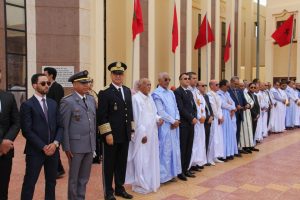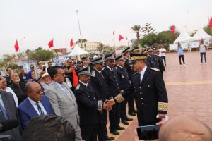 الفترة الصباحية التي إنطلقت من مقر عمالة الإقليم باستقبال الوفد الرسمي و أداء مراسيم تحية العلم، فيما قام عامل الإقليم و الوفد المرافق له، بتوزيع معدات وتجهيزات لفائدة الشباب حاملي المشاريع في اطار دعم الإقتصاد الإجتماعي والتضامني من طرف المبادرة الوطنية للتنمية البشرية لينتقل الوفد بعد ذالك في إتجاه مركز التأهيل المهني البحري ببوجدور و تدشين مسبح للتدريب على تقنيات الإنقاذ والنجاة في البحر .
