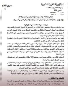 كشفت وثيقة سرية موجهة من الاستخبارات الخارجية السورية بسفارة نظام الاسد بالجزائر عن اتصالات وبرامج لإرسال العشرات من مرتزقة جبهة البوليساريو للتكوين على يد الجيش النظامي السوري والقتال إلى جانبه مباشرة بعد انطلاق الحرب الاهلية في سوريا، كما فضحت الوثيقة وجود اتفاق عسكري بين البوليساريو و النظام السوري والجزائر موقع في شهر يناير 2012، اي مع بداية انطلاق الثورة السورية.