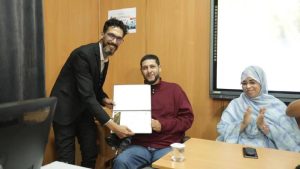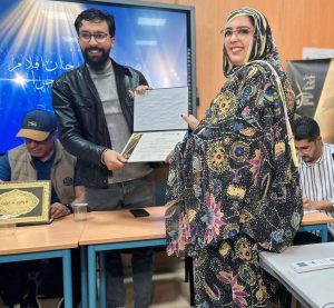 واختتمت جلسة “ماستر كلاس Masterclass” حول تجارب السينمائيين بالصحراء بمنح شهادة شكر وتقدير للدكتور لحبيب السيلوم مدير المركز الجهوي للإبتكار والتجريب التربوي و بتوزيع شواهد تقديرية على المخرجين وتلاوة برقية ولاء وإخلاص مرفوعة الى جلالة الملك محمد السادس تلاها سعيد زريبيع رئيس فيدرالية مهنيي السينما والسمعي البصري بالصحراء.