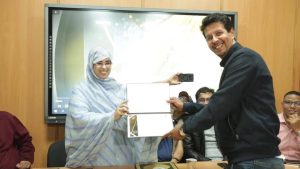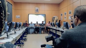 واما المخرج علي بوصولة فقد تحدث عن تجربته في عالم السينما وعن بداياته وقام بعرض تجربته في انتاج فيلم “إنديكو” الذي يتحدث عن نبتة مختصة في صباغة الزي الصحراوي من المكان الذي تنبت فيه في الهند لغاية استعمالها.